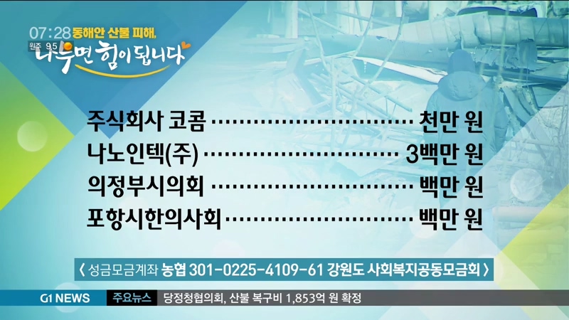 이어서, 동해안 산불 피해 복구와 이재민을 돕기 위한 성금을 보내주신 분들입니다.