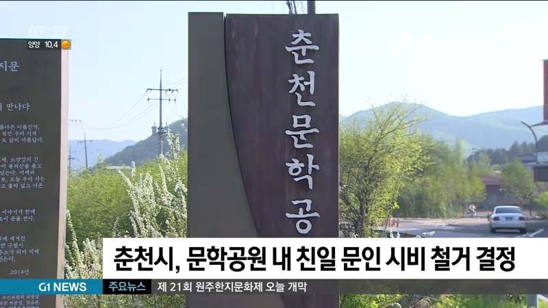 춘천시가 서면 문학공원 내 친일 문인의 시비를 철거하기로 했습니다.