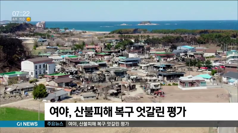 당정청이 산불 피해복구 계획을 발표한 가운데, 민주당과 한국당이 엇갈린 평가를 내놨습니다.