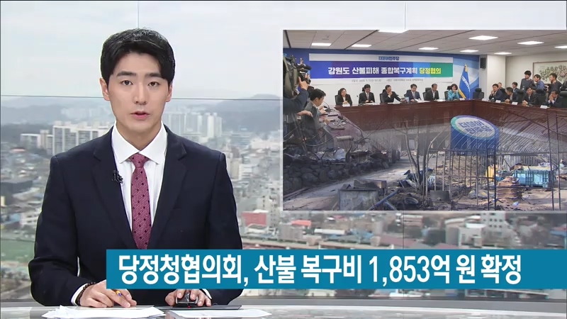 더불어민주당과 정부 그리고 청와대가 공동으로 발표한 강원 산불 피해 복구비 규모는 천 853억 원입니다.
