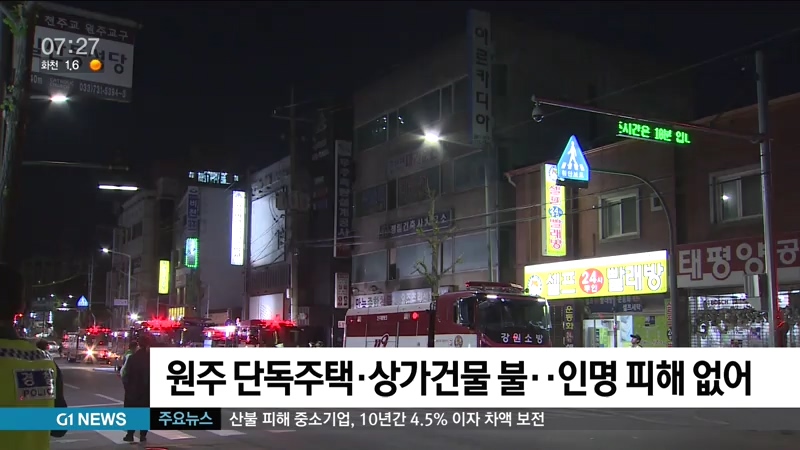 어제 오후 6시 반쯤 원주시 일산동 한 단독주택에서 난 불이 인근 4층짜리 상가 건물로 옮겨 붙었습니다.