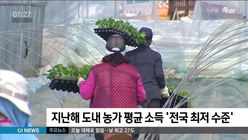지난해 전국 농가 평균 소득이 10% 증가한 반면, 도내 농가들은 0.7%에 그쳤던 것으로 나타났습니다.