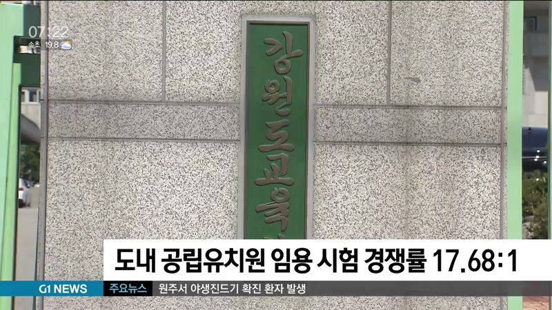 강원도교육청은 하반기 신·증설되는 공립유치원 교사 수요를 채우기 위해 진행한 임용 시험 접수 결과, 25명 모집에 442명이 접수해 17.68:1의 경쟁률을 보였다고 밝혔습니다.