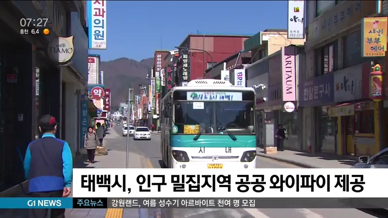 태백시가 시내버스 18대에 공공 와이파이 서비스를 제공한 데 이어, 버스정류장과 다중밀집지역에도 무선인터넷 서비스를 확대하기로 했습니다.