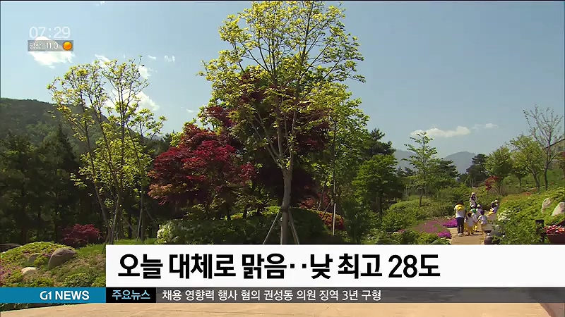 낮 최고기온은 영서지역이 21도에서 28도, 영동지역은 21도에서 23도로 예상됩니다.