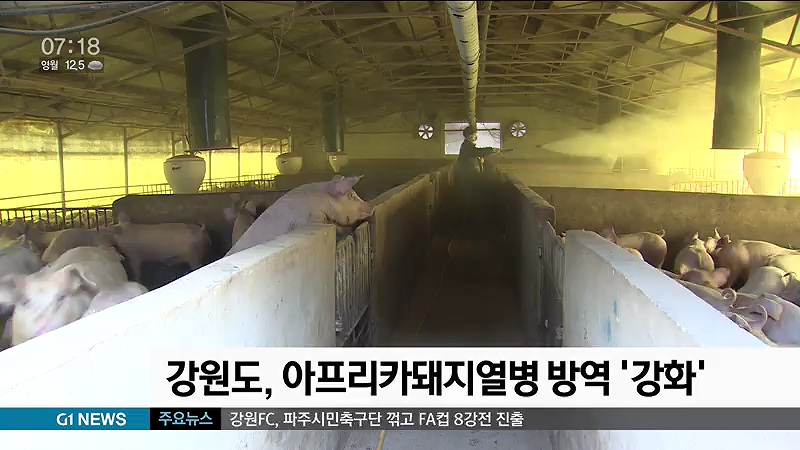 강원도는 도내 280여개 양돈 농가에 대해 매일 소독을 실시하고, 농가별 전담 공무원을 지정하는 등 유입 차단에 총력을 쏟고 있다고 밝혔습니다.