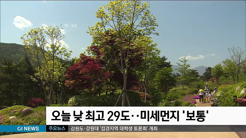낮 최고기온은 영서지역이 21도에서 27도, 영동지역이 26도에서 29도로 예상됩니다.