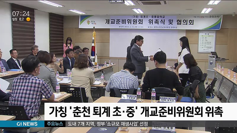 도내에서 처음으로 유치원과 초등학교, 중학교가 통합학교로 운영될 예정인 가칭 '춘천 퇴계초·중학교' 개교준비위원회 위촉식이 춘천교육지원청에서 열렸습니다.