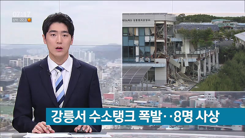 어제 오후 6시 22분쯤, 강릉 과학산업단지 내 강원테크노파크 강릉벤처공장에서 400 세제곱미터 규모의 수소탱크 3기가 폭발하는 사고가 발생했습니다.