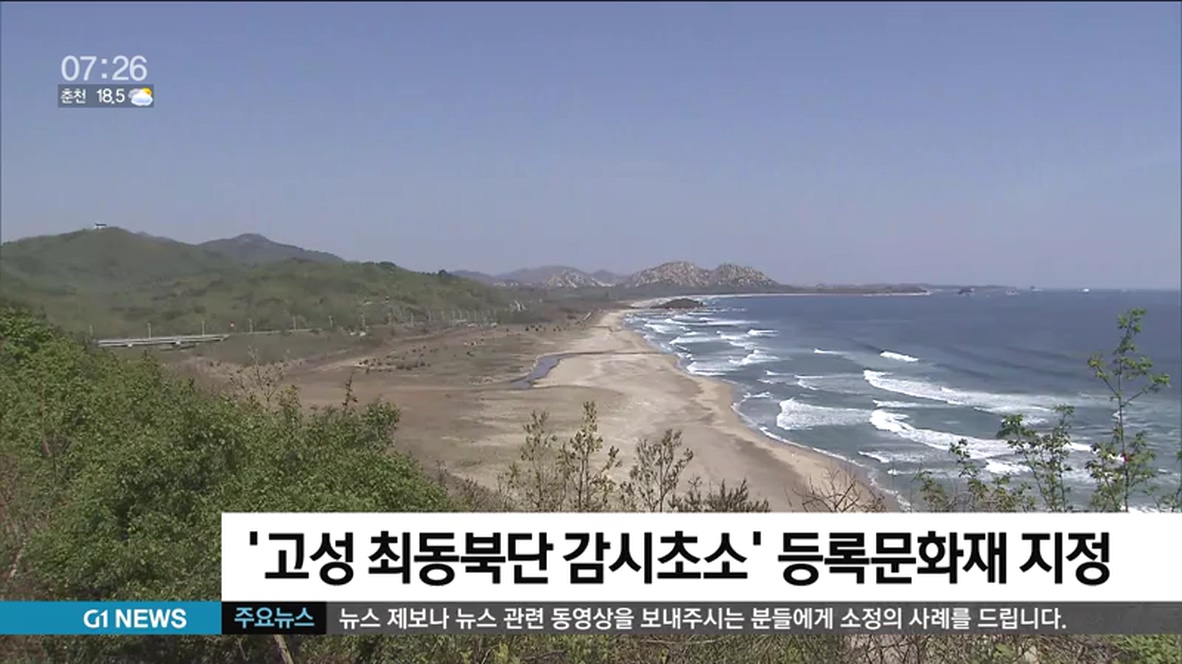 지난해 9.19 군사합의에 따라 남북이 철수한 비무장 지대 내 감시초소 GP 가운데 유일하게 원형을 보존하기로 한 우리나라 최동북단 고성 동해안 GP가 문화재로 지정됐습니다.