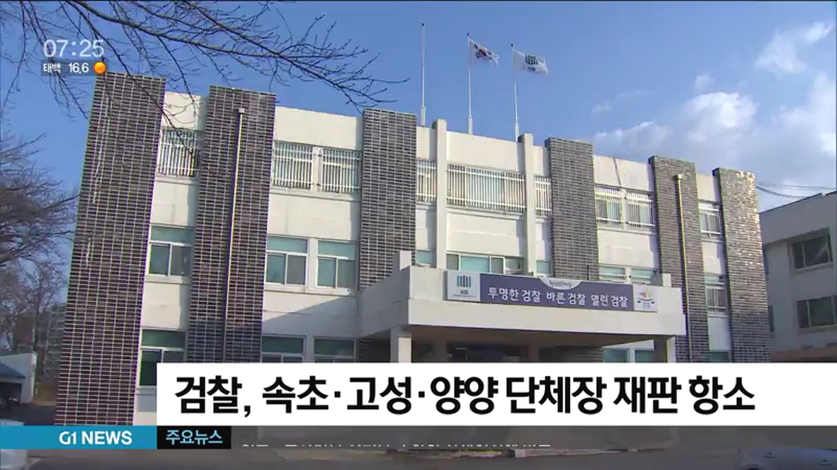 공직선거법 위반 혐의로 기소된 속초, 고성, 양양 3개 자치단체장에 대해 검찰이 항소했습니다.