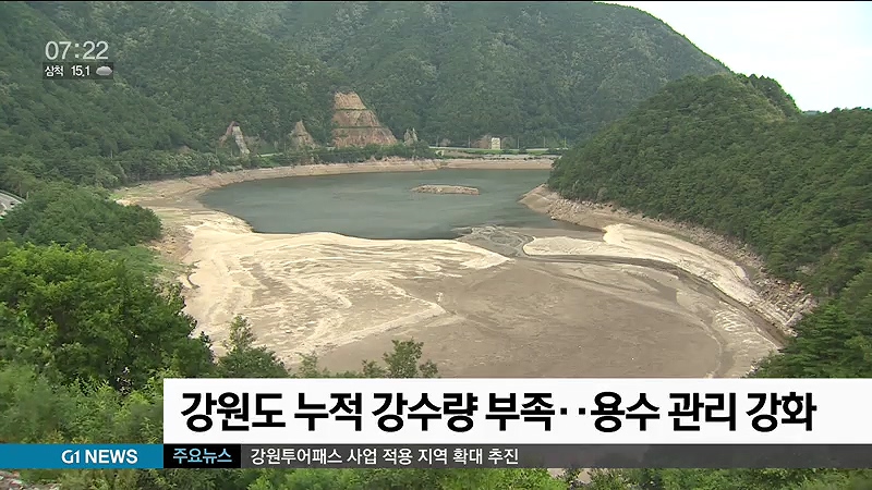 이에 따라, 정부는 속초시 쌍천 지하댐과 강릉시 오봉댐 등을 가뭄 예.경보 4단계 가운데 '관심' 단계로 지정하고, 사전 용수관리를 하기로 했습니다.