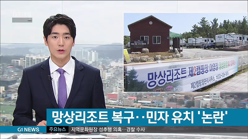 "망상 오토캠핑장은 정상복구가 저희 최대 과제입니다. 늦어도 내년 말까지는 시설 복구를 마칠 생각입니다. 항간에 나오는 민자 유치 문제는 경제자유구역청과 협조해 인근에 유치할 계획입니다."