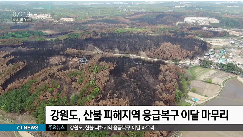 강원도는 고성과 속초, 강릉과 동해, 인제 등에서 동시 다발적으로 발생한 산불 피해지역에 대해 지난달말 긴급 조치를 완료한데 이어, 이달말까지는 응급복구도 마치겠다고 밝혔습니다.