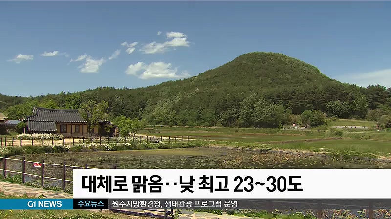 낮 최고기온은 영서지역이 24도에서 30도, 영동지역은 23도에서 27도의 분포로 어제와 비슷하거나 조금 높겠습니다.