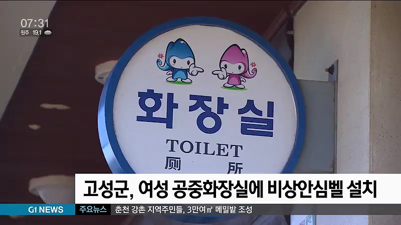 고성군이 여성이 안심하고 화장실을 이용할 수 있도록 범죄취약지인 공중화장실에 비상안심벨을 설치합니다.