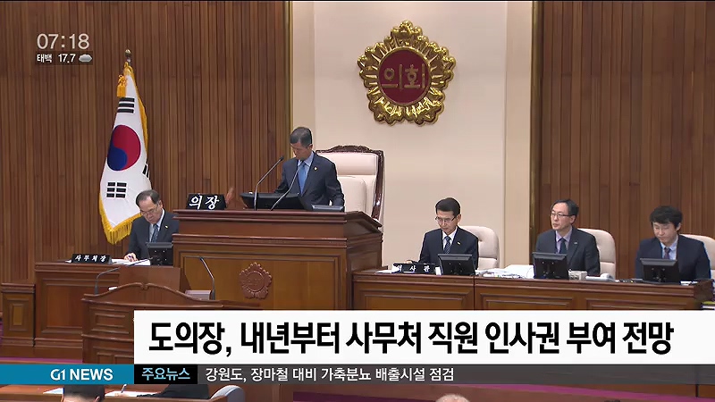 이르면 내년부터 강원도의회 의장이 의회 사무처 직원 인사권을 부여받을 전망입니다.