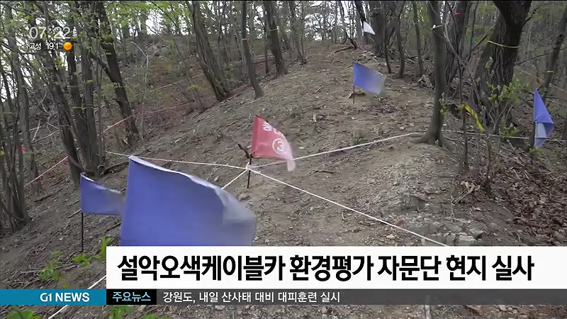 원주지방환경청과 환경영향평가 자문단, 양양군 관계자 등 20여명은 오늘(20일)부터 이틀동안 상·하부 정류장과 6개 지주 등 사업 예정 부지를 직접 다니며, 동·식물, 지형·지질, 소음·진동 등 분야별로 확인 작업을 벌입니다.