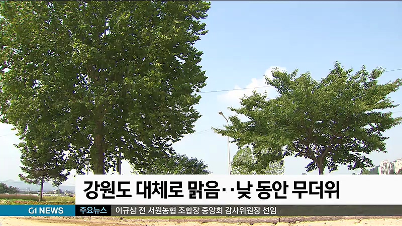 강원도는 오늘 대체로 맑겠으며, 낮에는 30도를 넘는 무더위가 예상됩니다.