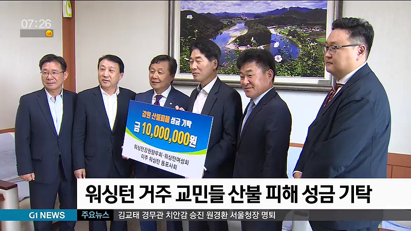미국 워싱턴 거주 교민들이 지난 4월 발생한 산불 피해 지역 주민들을 위한 성금을 기탁했습니다.
