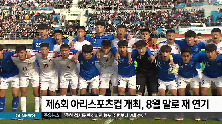 강원도와 강원도교육청에 따르면, 당초 이달말 평양에서 개최 예정이었던 '제6회 아리스포츠컵 국제유소년 축구대회'가 지난 주말 한·북·미 정상의 판문점 회동을 계기로 진행될 실무 협상의 여파로 다음달 말로 다시 연기됐습니다.