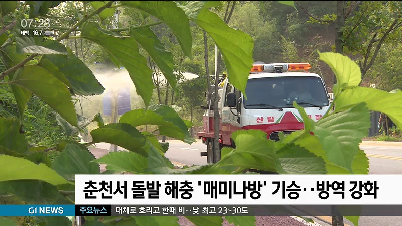 춘천시는 최근 매미나방이 우화기에 접어들면서 개체수가 급증해 과수와 임목 등에 피해가 우려된다며, 강원도산림과학원 등 전문기관과 병해충 정보를 공유해 방제 작업을 진행하고 있다고 밝혔습니다.