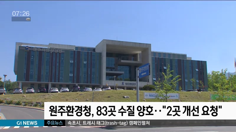 원주환경청, 83곳 수질 양호..2곳 개선 요청