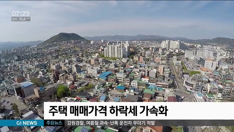 한국감정원의 '주택가격동향 보고서'를 보면, 지난달(7월) 도내 주택매매 가격 변동률은 -0.32%로, 전국 평균과 비교했을때 0.23%p 하락폭이 더 컸습니다.
