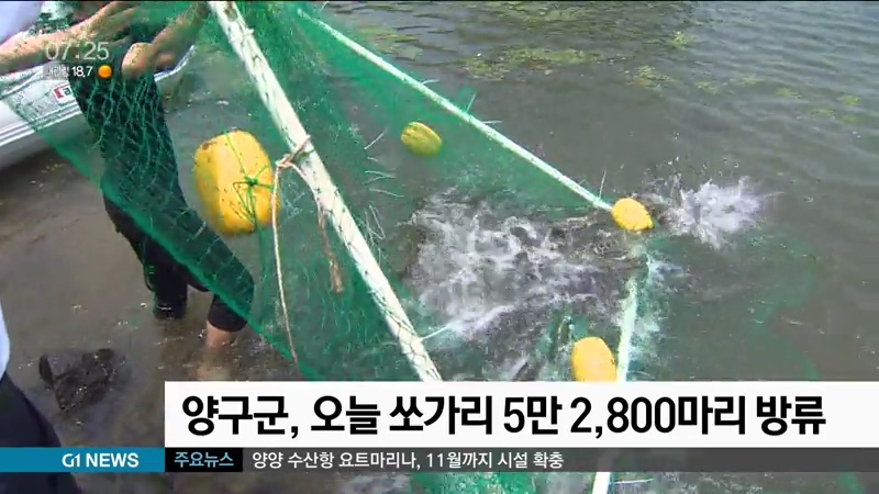 양구군이 오늘(5일) 양구읍 석현리 선착장에서 쏘가리 5만 2천800여 마리를 방류합니다.