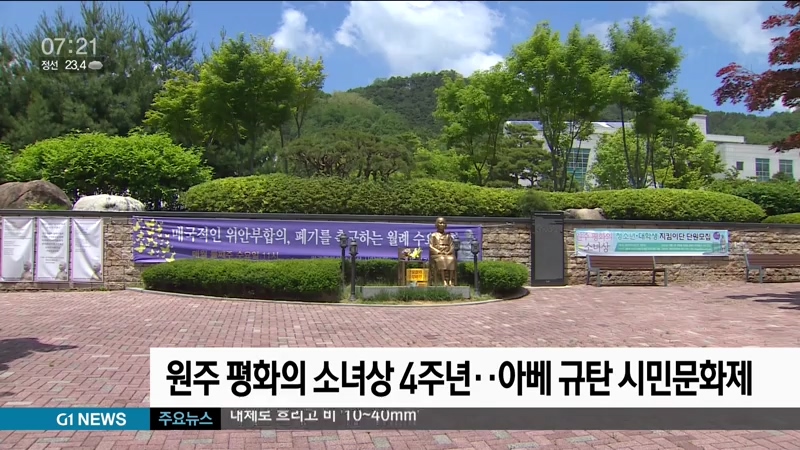 원주 평화의 소녀상 제막 4주년을 맞아, 오는 14일 오후 7시, 원주 평화의 소녀상 앞에서 아베 규탄 시민문화제가 열립니다.