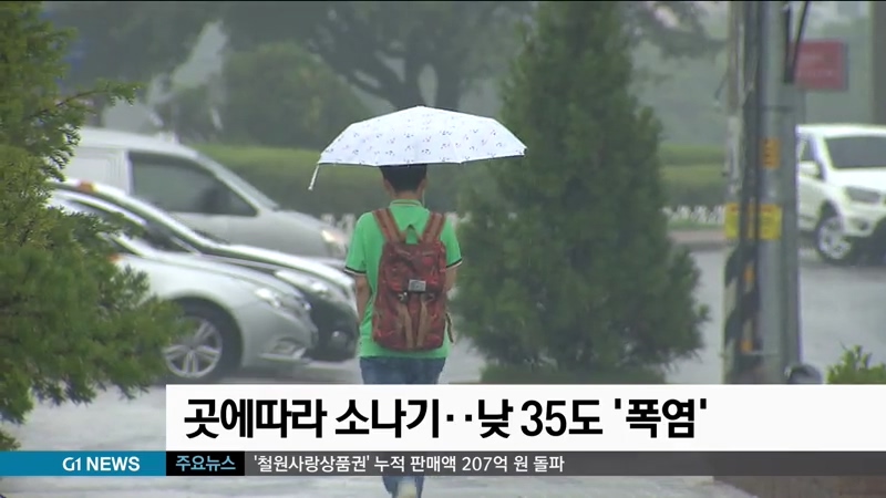 비는 강원내륙과 산지에 5~40mm가 내리겠고, 낮에는 기온이 35도까지 올라 매우 덥겠습니다.