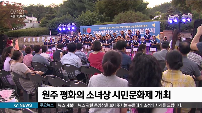 원주 평화의 소녀상 시민모임과 원주시민연대는 일본군 위안부 피해자 기림의 날을 맞아, 평화의 소녀상 앞에서 아베 규탄 시민 문화제를 개최했습니다.