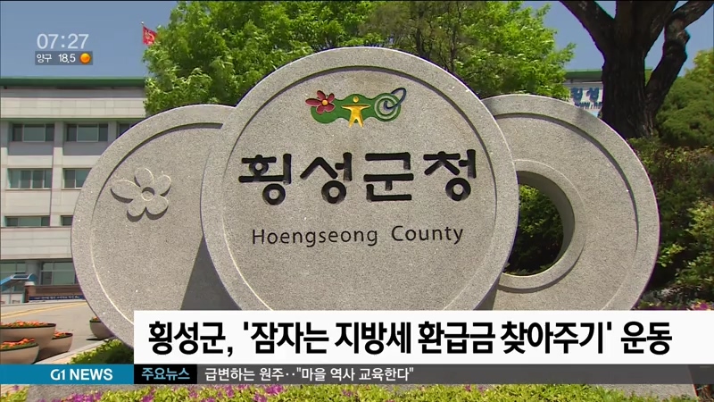 횡성군은 지방세 징수 과정에서 발생한 환급금을 돌려주는 '잠자는 지방세 환급금 찾아주기 운동'을 전개합니다.