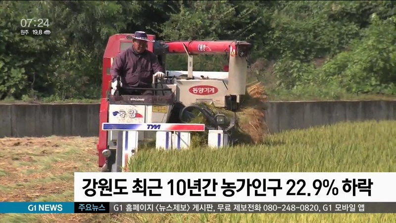 강원도 최근 10년간 농가인구 22.9% 하락