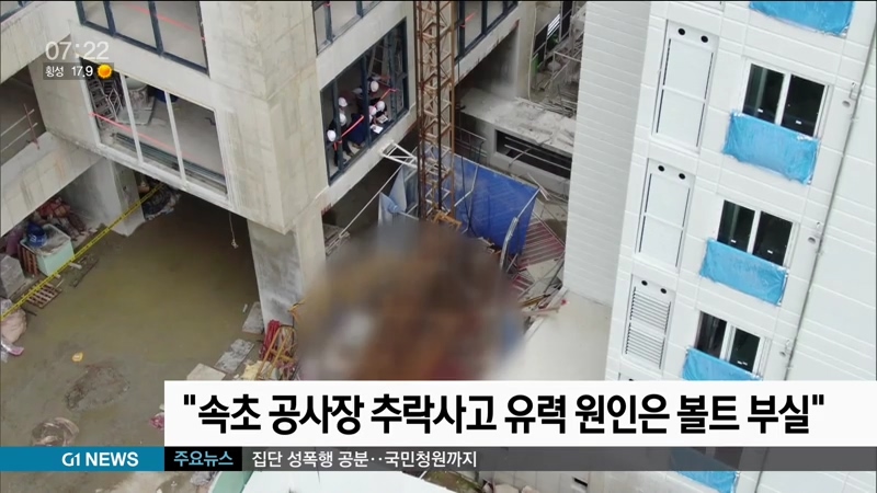 "속초 공사장 추락사고 유력 원인은 볼트 부실"