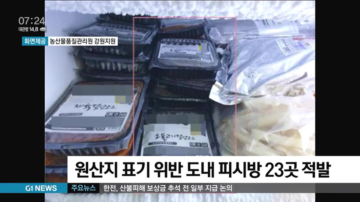 국립농산물품질관리원 강원지원은 지난달(8월) 21일부터 일주일 동안, 도내 피시방을 대상으로 원산지 표시 특별점검을 벌인 결과, 23곳에서 위반행위가 적발됐다고 밝혔습니다.