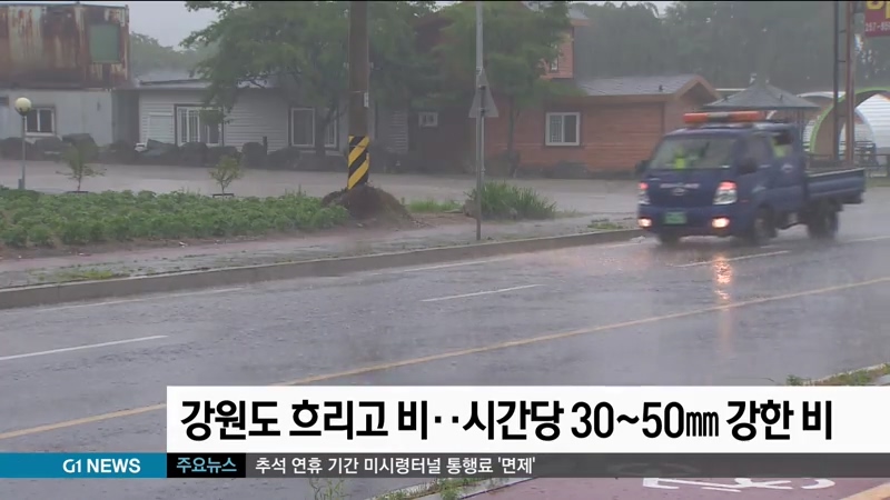 강원지방기상청은 정체전선과 북상하는 태풍의 영향으로 시간당 30~50mm의 매우 강한 비가 내리는 곳도 있겠다며 시설물 관리에 주의를 당부했습니다.
