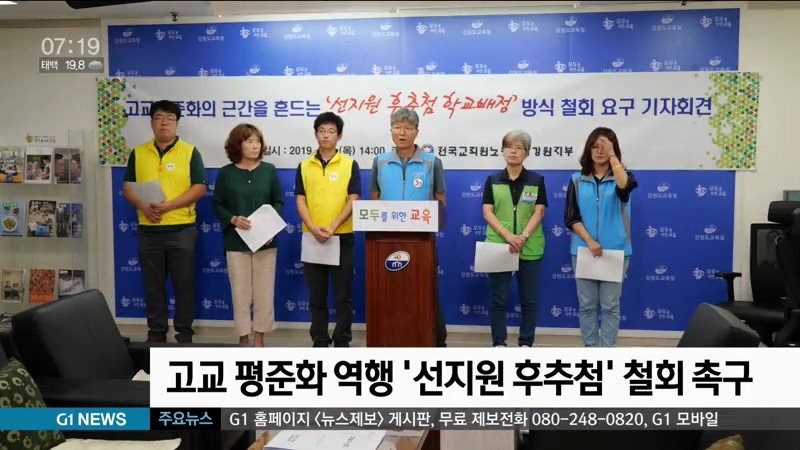 전교조 강원지부와 평등교육실현을 위한 강원학부모회는 도교육청에서 기자회견을 열고, '선지원 후추첨' 방식이 도입되면 특정학교 쏠림 현상이 발생할 것이라고 우려했습니다.