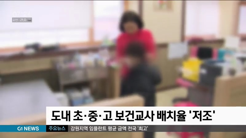 도내 초.중.고등학교의 보건교사 배치율이 저조한 것으로 나타났습니다.