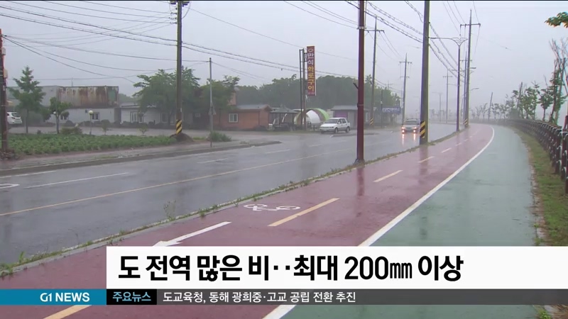 내일까지 예상 강수량은 영서지역이 50에서 많게는 200mm 이상, 영동지역이 30에서 100mm 이상으로 예보됐습니다.