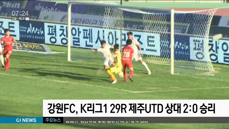 강원FC, K리그1 29R 제주UTD 상대 2:0 승리
