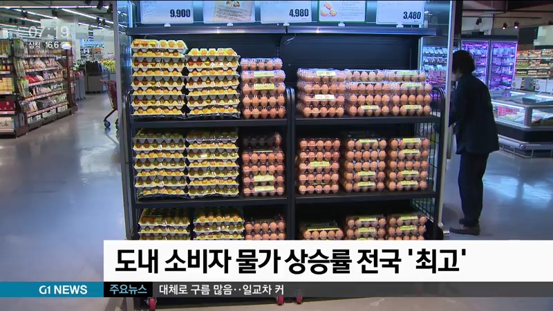 통계청에 따르면, 지난 1월부터 최근까지 도내 누적 소비자물가 상승률은 1.0%로, 전국 평균인 0.5%를 웃돌며 전국 17개 시도 중에 가장 높았습니다.