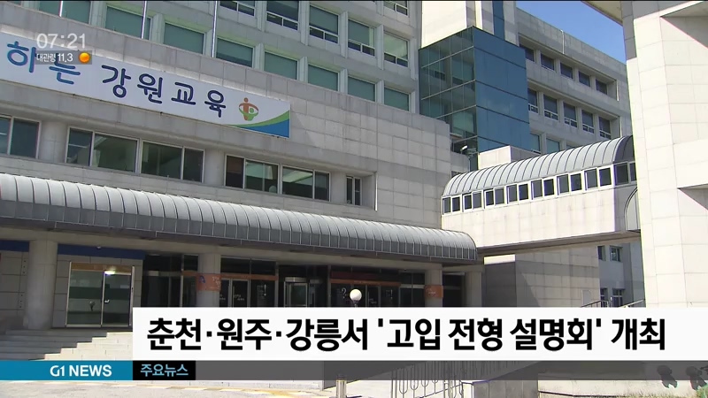 강원도교육청은 오늘(19일) 춘천교육문화관을 시작으로 21일 강릉교육지원청과 28일 원주 버들중학교에서 '찾아가는 고교 입학전형 설명회'를 개최합니다.