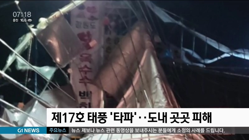 강원도가 제17호 태풍 '타파'의 영향권에 접어들면서, 도내 곳곳에 피해가 발생했습니다.