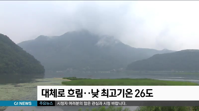 낮 최고기온은 21~26도로 어제보다 1~3도 낮겠고, 강원 내륙과 산지에 안개가 끼는 곳이 있겠습니다.