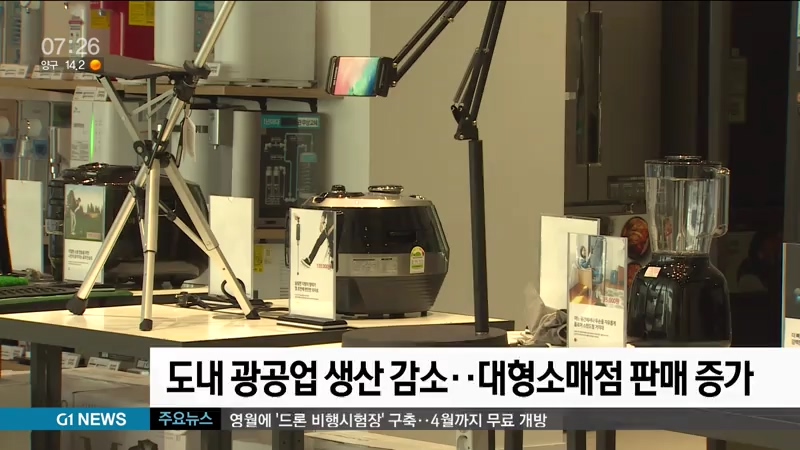 도내 광공업 생산 감소..대형소매점 판매 증가
