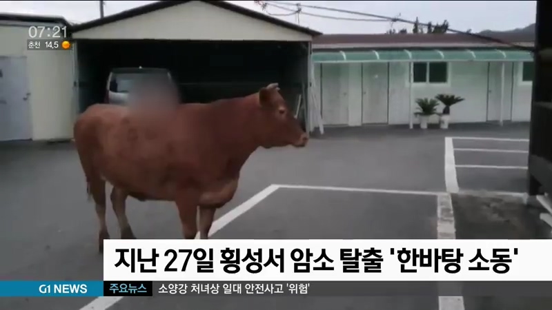 횡성경찰서에 따르면, 지난 27일 오후 6시쯤 A씨가 자신의 축사에 있던 송아지를 다른 축사로 옮기는 과정에서 어미 암소가 탈출했습니다.