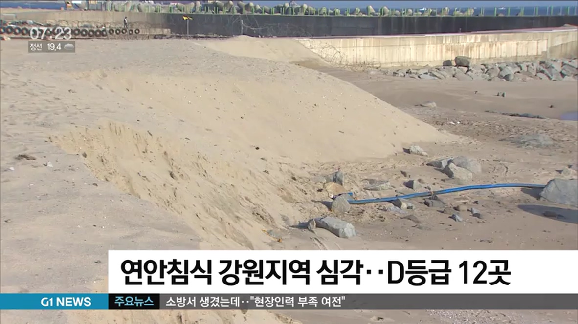 또 연안침식 심각단계인 D등급 지역은 전국에 12곳으로 모두 강원도에 집중된 것으로 나타났습니다.