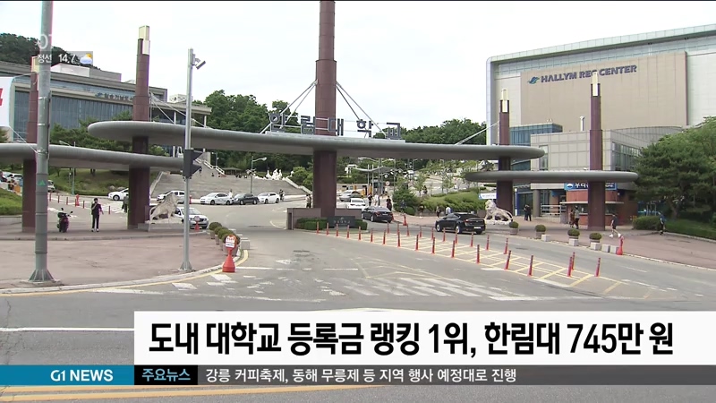 도내에 있는 4년제 대학 가운데 연간 등록금이 가장 비싼 곳은 춘천 한림대인 것으로 나타났습니다.