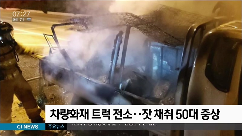 차량화재 트럭 전소..잣 채취 50대 중상